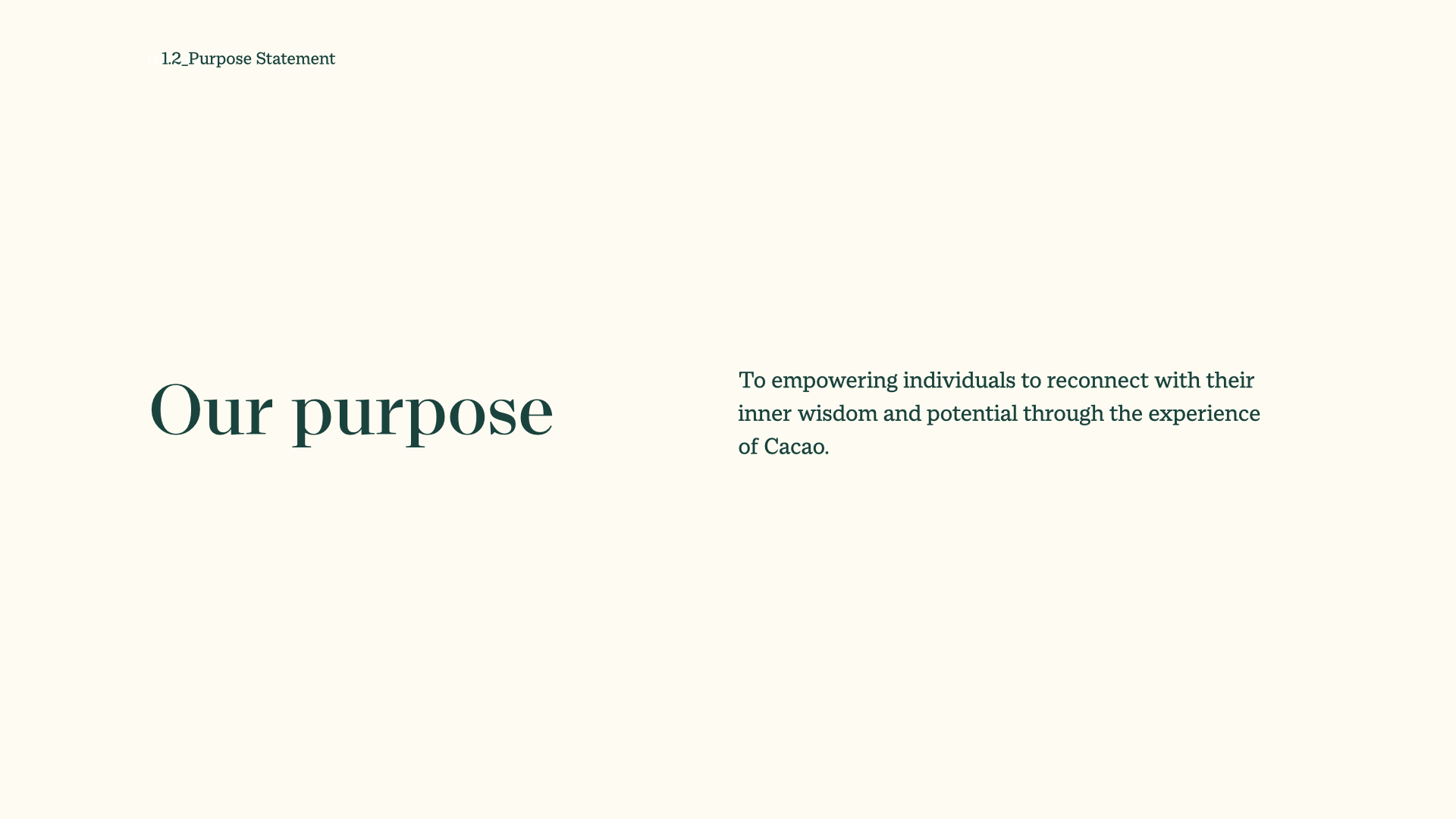 A living guide aligning purpose, voice, and character including identity, color palette and photography framing.